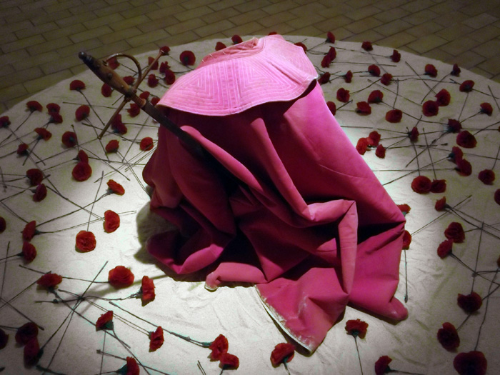 Dans cette installation, on passe de la 1ere à l’ultime phase (tercio) de la corrida, avec la cape de Brega et l’estocade simulée.
